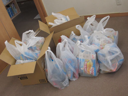 みんなにぎやかに大きな袋を下げて帰りました。